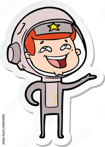 Obraz premium sticker of a cartoon laughing astronaut