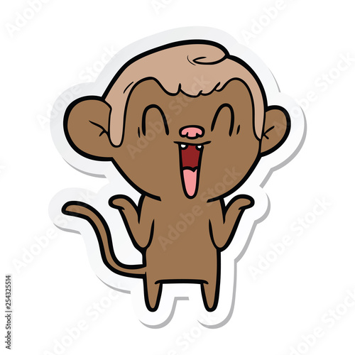 Fototapeta premium sticker of a cartoon laughing monkey