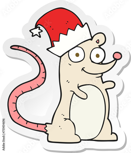 Obraz premium sticker of a cartoon mouse wearing christmas hat
