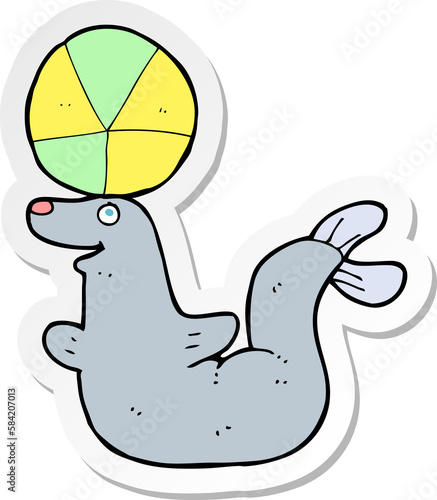 Obraz premium sticker of a cartoon seal with ball