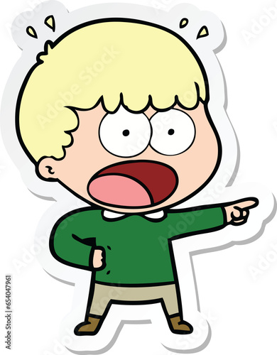 Obraz premium sticker of a cartoon shocked man pointing