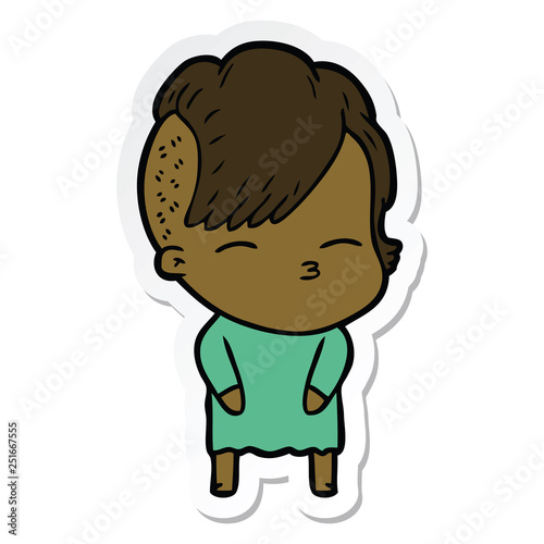 © lineartestpilot, Obraz premium sticker of a cartoon squinting girl