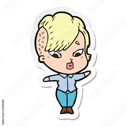 © lineartestpilot, Fototapeta premium sticker of a cartoon surprised girl