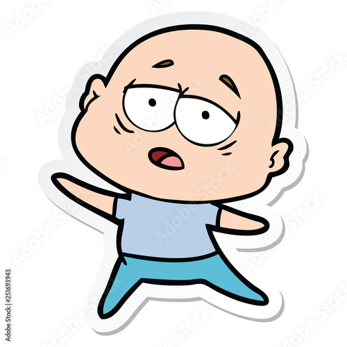 Obraz premium sticker of a cartoon tired bald man