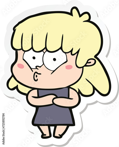 © lineartestpilot, Fototapeta premium sticker of a cartoon whistling girl