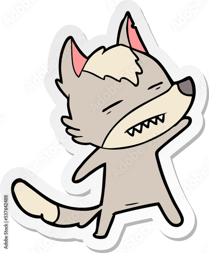 © lineartestpilot, Naklejka premium sticker of a cartoon wolf showing teeth
