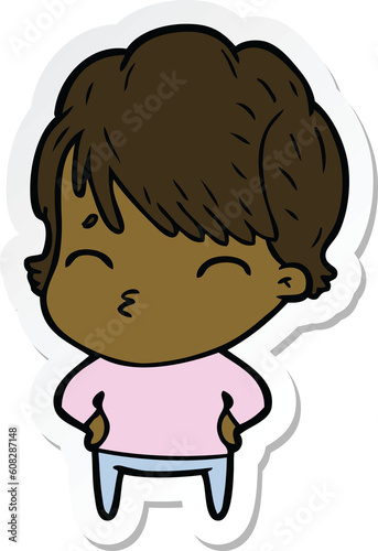 © lineartestpilot, Obraz premium sticker of a cartoon woman thinking