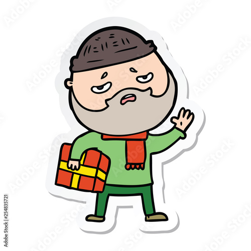 Obraz premium sticker of a cartoon worried man with beard