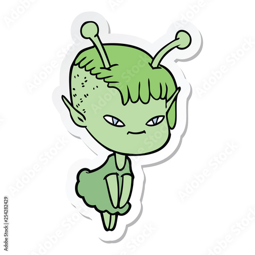 Fototapeta premium sticker of a cute cartoon alien girl