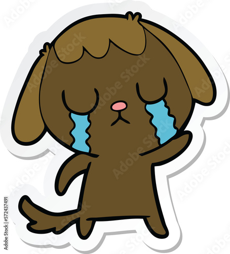 © lineartestpilot, Obraz premium sticker of a cute cartoon dog crying