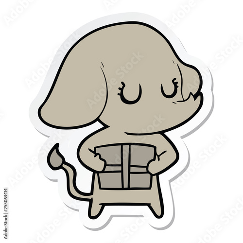 Obraz premium sticker of a cute cartoon elephant with gift
