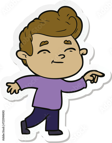 © lineartestpilot, Obraz premium sticker of a happy cartoon man pointing