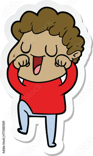 Obraz premium sticker of a laughing cartoon man rubbign eyes