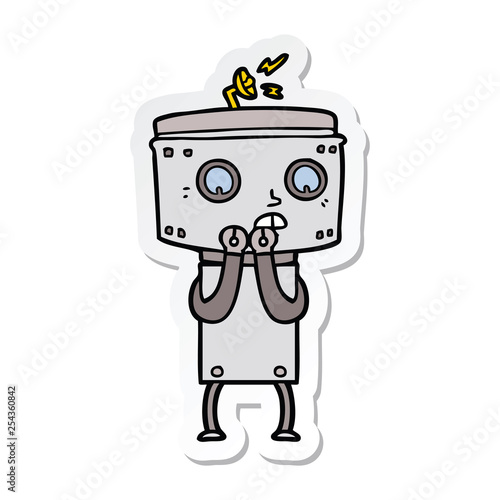 Fototapeta premium sticker of a nervous cartoon robot