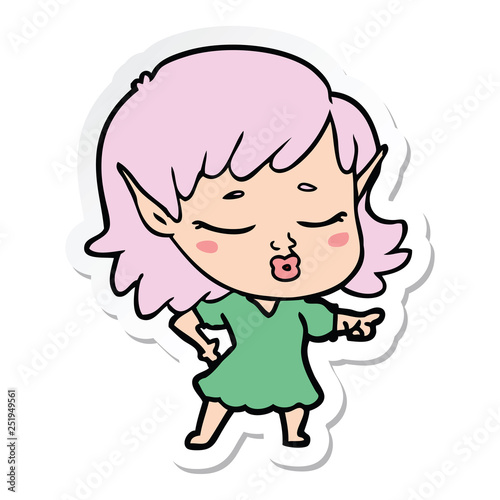 Fototapeta premium sticker of a pretty cartoon elf girl