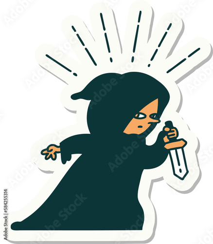 Obraz premium sticker of tattoo style assassin with knife