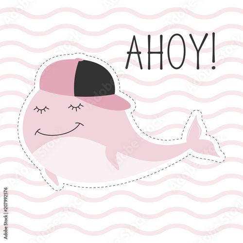 © tartumedia, Fototapeta premium Sticker with charming pink whale