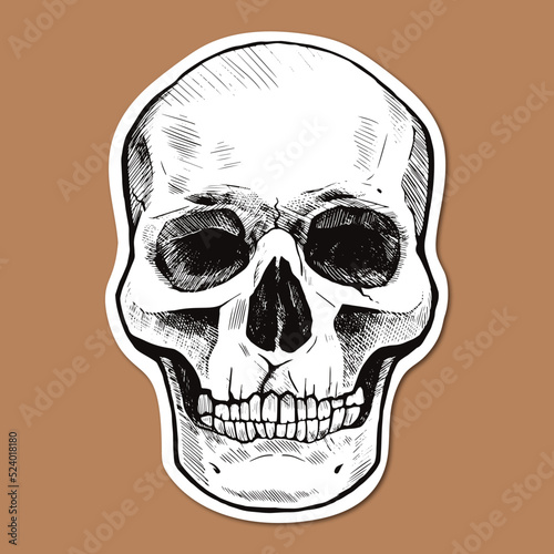 Fototapeta premium Sticker with hand drawn human skull. Vector graphic illustration.