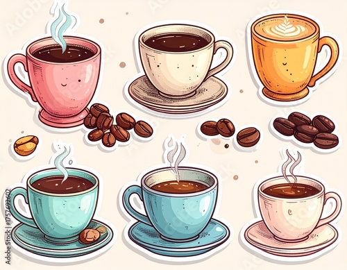 © Yvonne Bogdanski, Obraz premium Stickerbogen Kaffeetassen