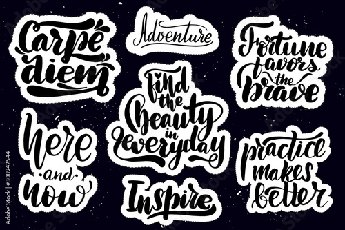 Fototapeta premium Stickers with hand drawn typography lettering inscriptions.