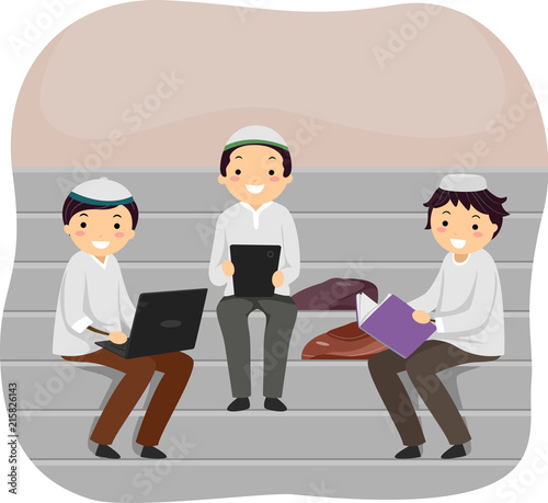 Fototapeta premium Stickman Teen Boys Muslim Students Illustration