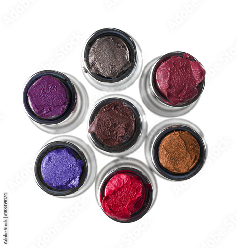 © riccardo, Naklejka premium still life of colored lipsticks seen from above