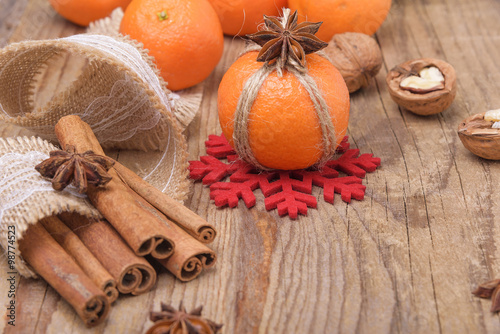 © Tanya Rozhnovskaya, Fototapeta premium Still life with tangerines on a wooden background.