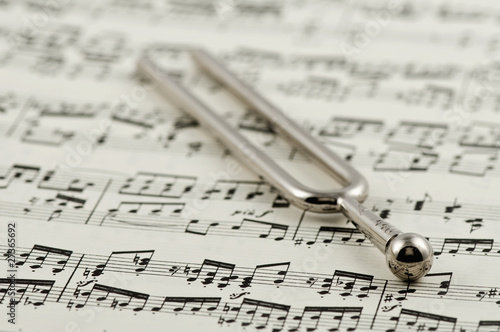 © unitypix, Naklejka premium Stimmgabel auf Noten