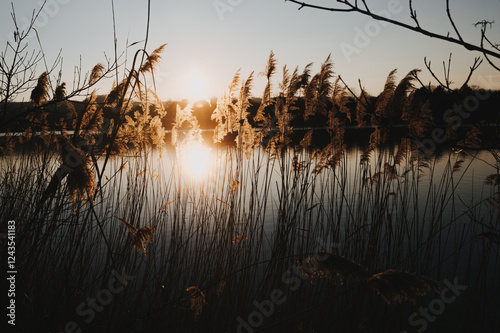 © Niklas, Fototapeta premium Stimmungsvolle Naturmomente am Breitenauer See bei Sonnenuntergang