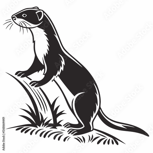 © MK, Obraz premium stoat black silhouette icon vector