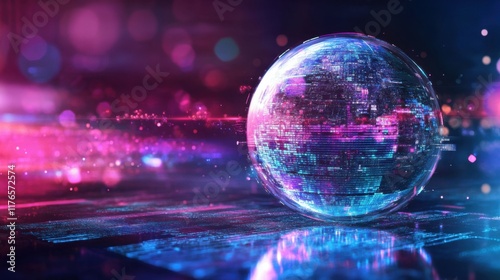 Obraz premium Stock banner technology based on data science and innovation is used in Internet cyberspace by a round ball with AI text.