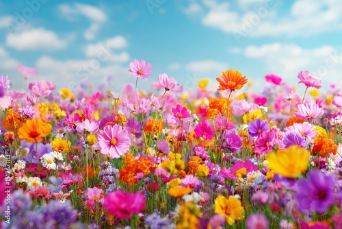 Naklejka premium Stock features an illustration of a flower meadow during spring