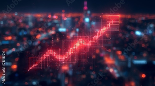 Fototapeta premium Stock market chart rising above city skyline financial growth and investment...