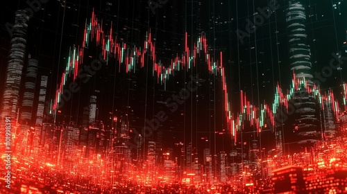 Naklejka premium Stock market chart showing green uptrend and red downtrend
