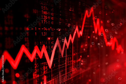 Obraz premium Stock Market Crash Concept with Red Graph and Financial Data on a Digital Screen