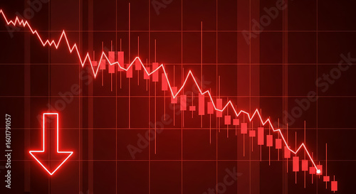 © Kowshar habib, Naklejka premium Stock Market Crash Downward Trend Red Arrow