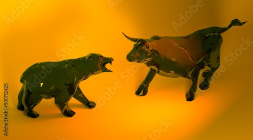 © vegefox.com, Obraz premium stock market 3d motive bull and bear