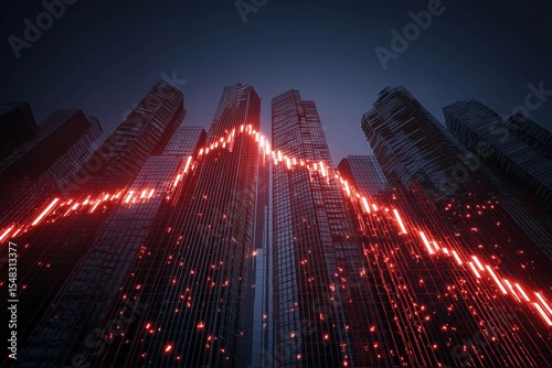 © Iryna, Obraz premium Stock market downturn - red graph going down on night city skyline background