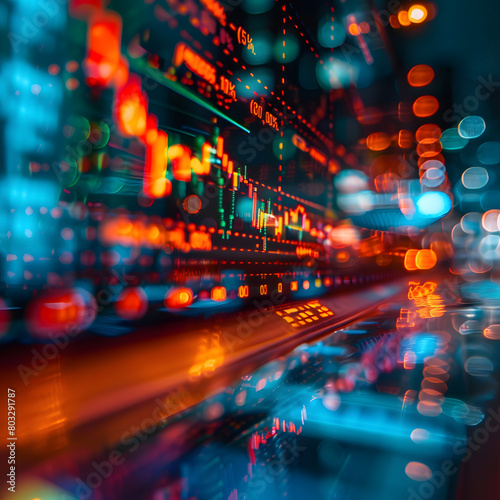 © EEKONG, Fototapeta premium Stock market graph analysis with blurry background.