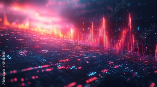 Fototapeta premium Stock market or financial data with a digital screen displaying a candlestick...