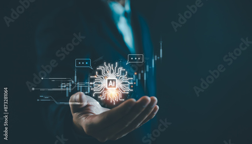 © flyalone, Fototapeta premium Stock market trading with AI Artificial Intelligence technology concept, Digital technology strategy for business growth, Financial investment stock market by AI. Virtual assistant on internet