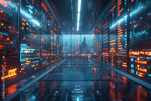 © Daranrat, Fototapeta premium Stock trading dashboard projected in midair, futuristic hologram style