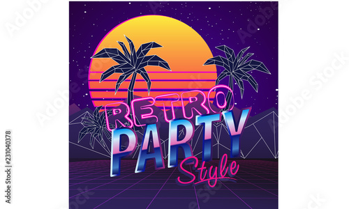 Fototapeta premium stock vector eighties retro neon style ultra violet vintage style disco design fashion party