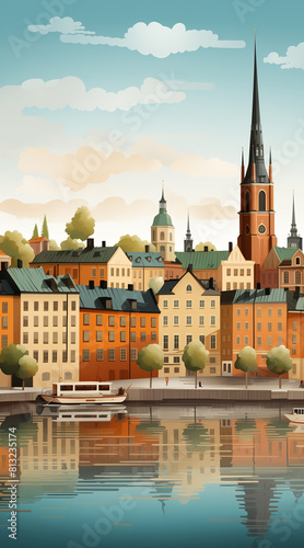 © Enrique, Fototapeta premium Stockholm background for social media, illustration
