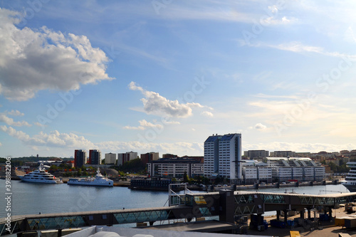 © Zhanko, Naklejka premium Stockholm cityscape. View from the ferry. Sweden, Scandinavia