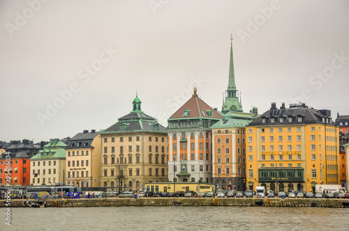 Fototapeta premium Stockholm Gamla Stan panorama Sweden cloudy old town cityscape landscape...