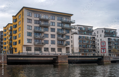 Naklejka premium Stockholm sleeping area, residential buildings on the canal