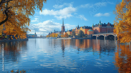 © Novanture, Obraz premium Stockholm, Sweden city skyline created with Generative AI technology