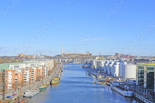 © Dmitry Vereshchagin, Fototapeta premium Stockholm, Sweden - March, 16, 2016: cargo ship in Stockholm, Sweden