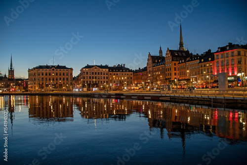 Naklejka premium Stockholm, Sweden: scenic view of Gamla stan (oldtown) skyline at dusk